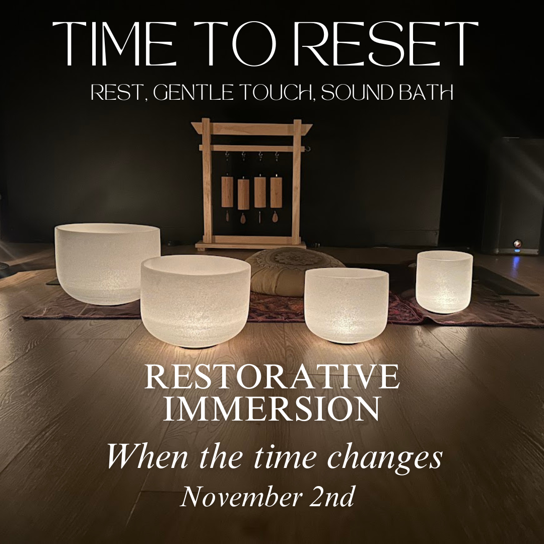 It's time to reset the clock, and yourself physically and mentally. Join us on November 2nd, for a Restorative Immersion to experience deep relaxation to reset your nervous system.